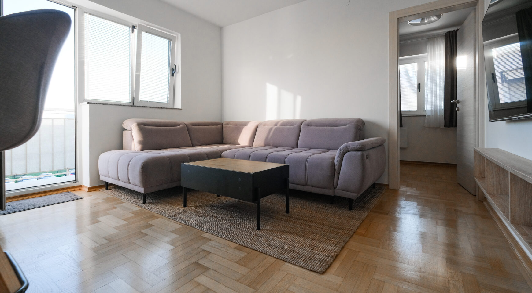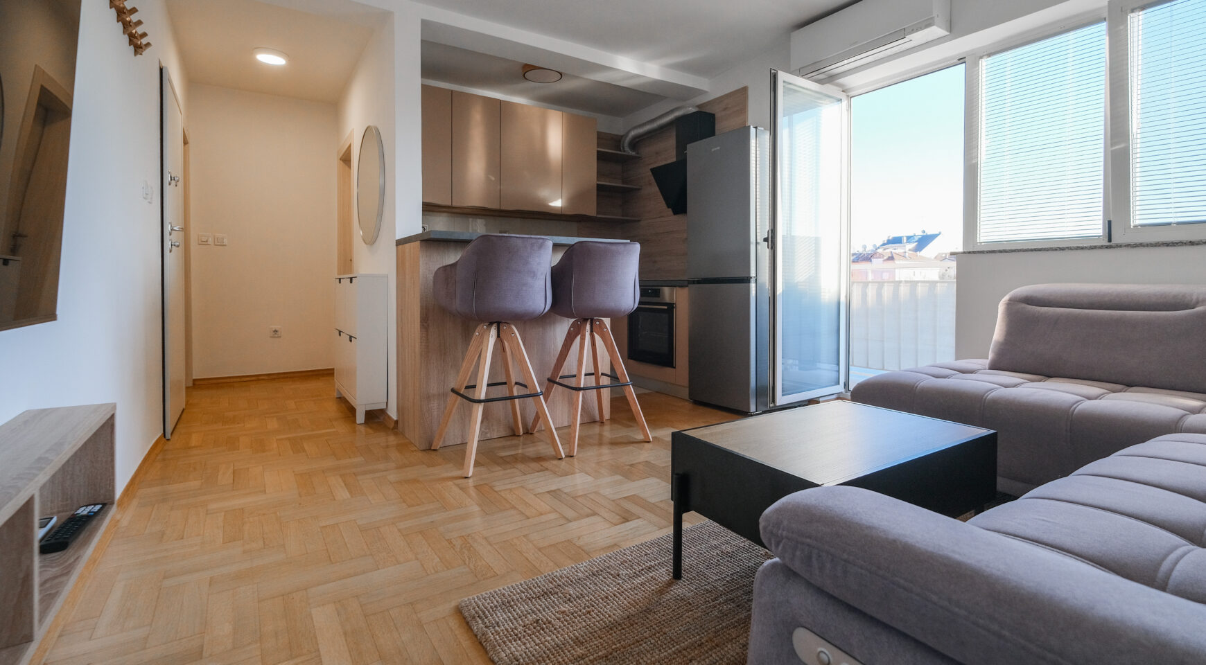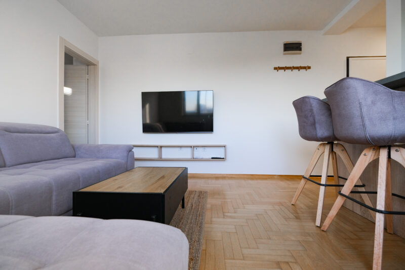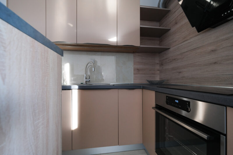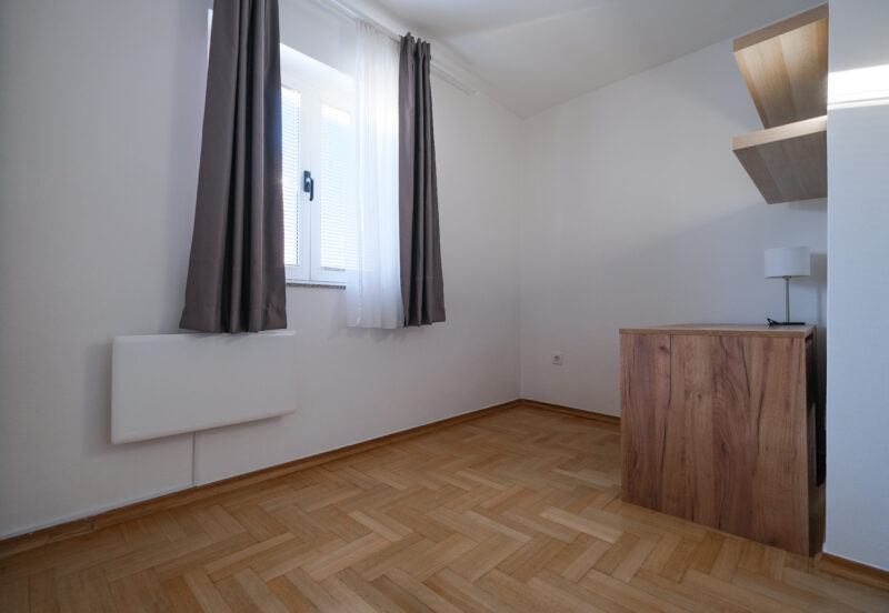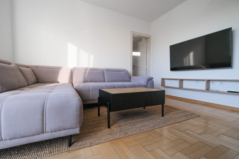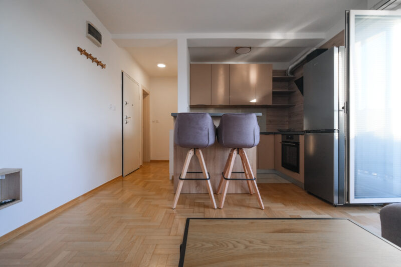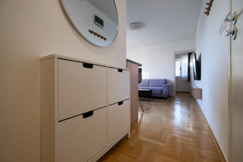 Unatoč manjoj kvadraturi, raspored je izuzetno dobro osmišljen i prostor je maksimalno iskorišten, što stan čini ugodnim za svakodnevni život.