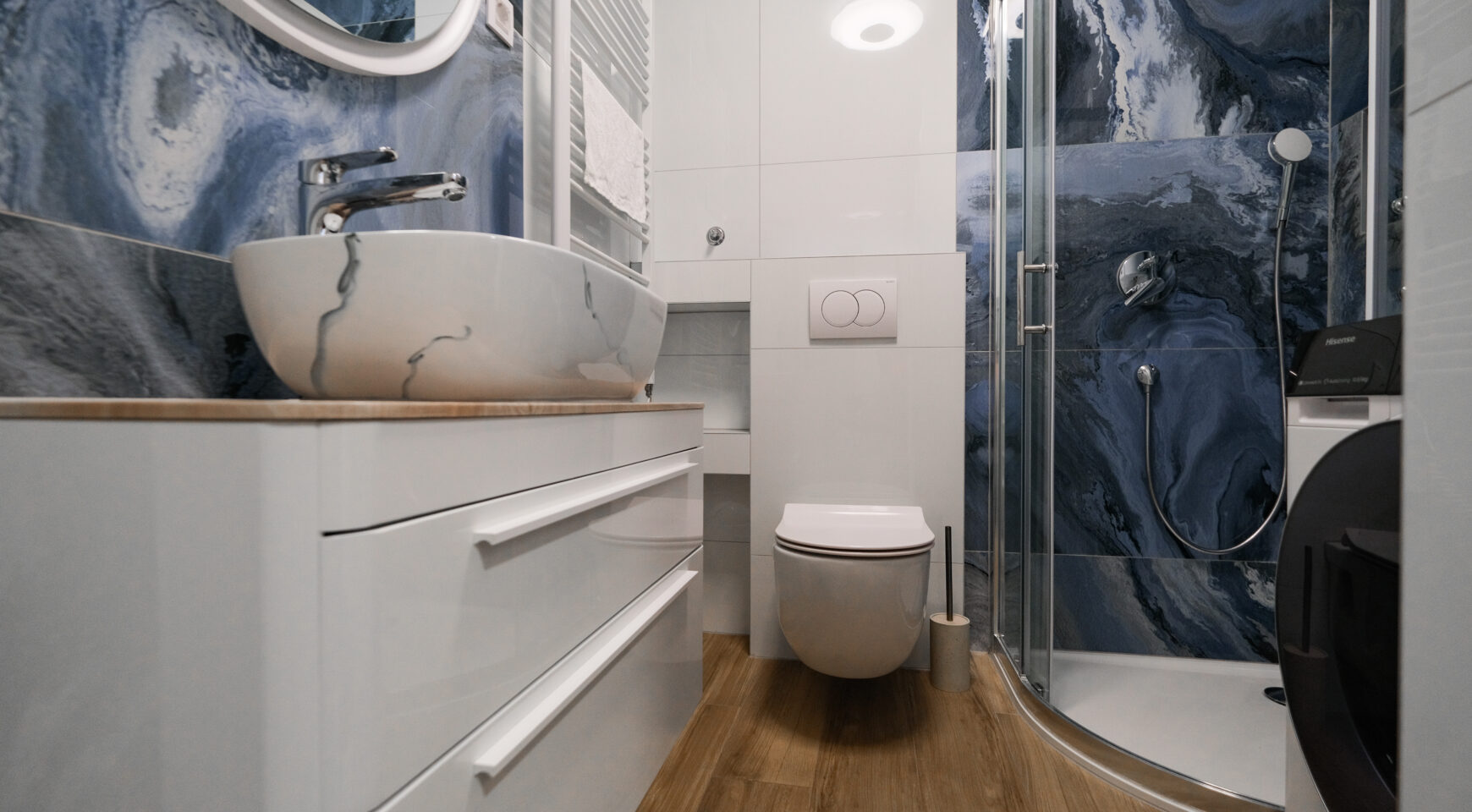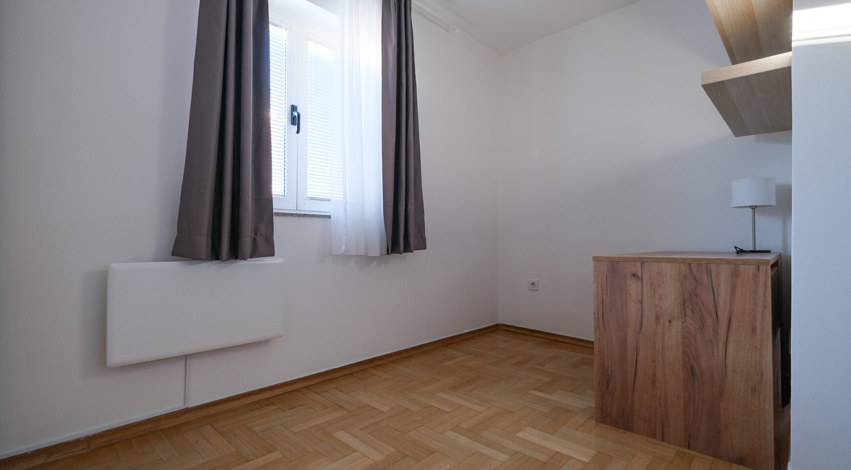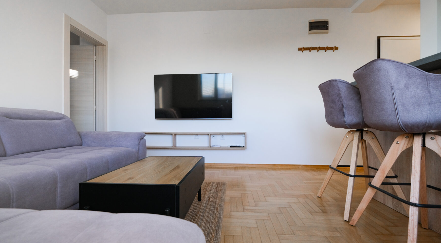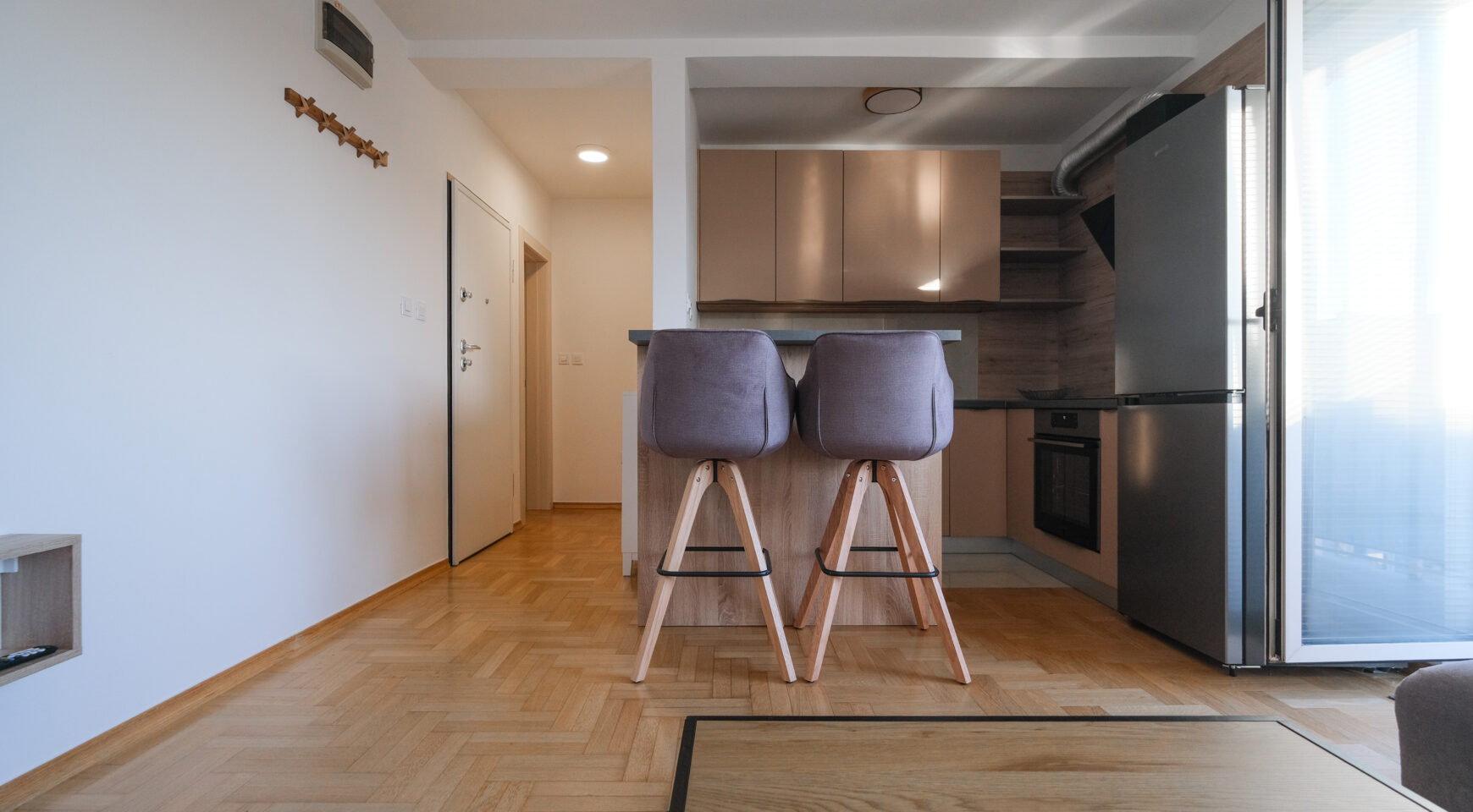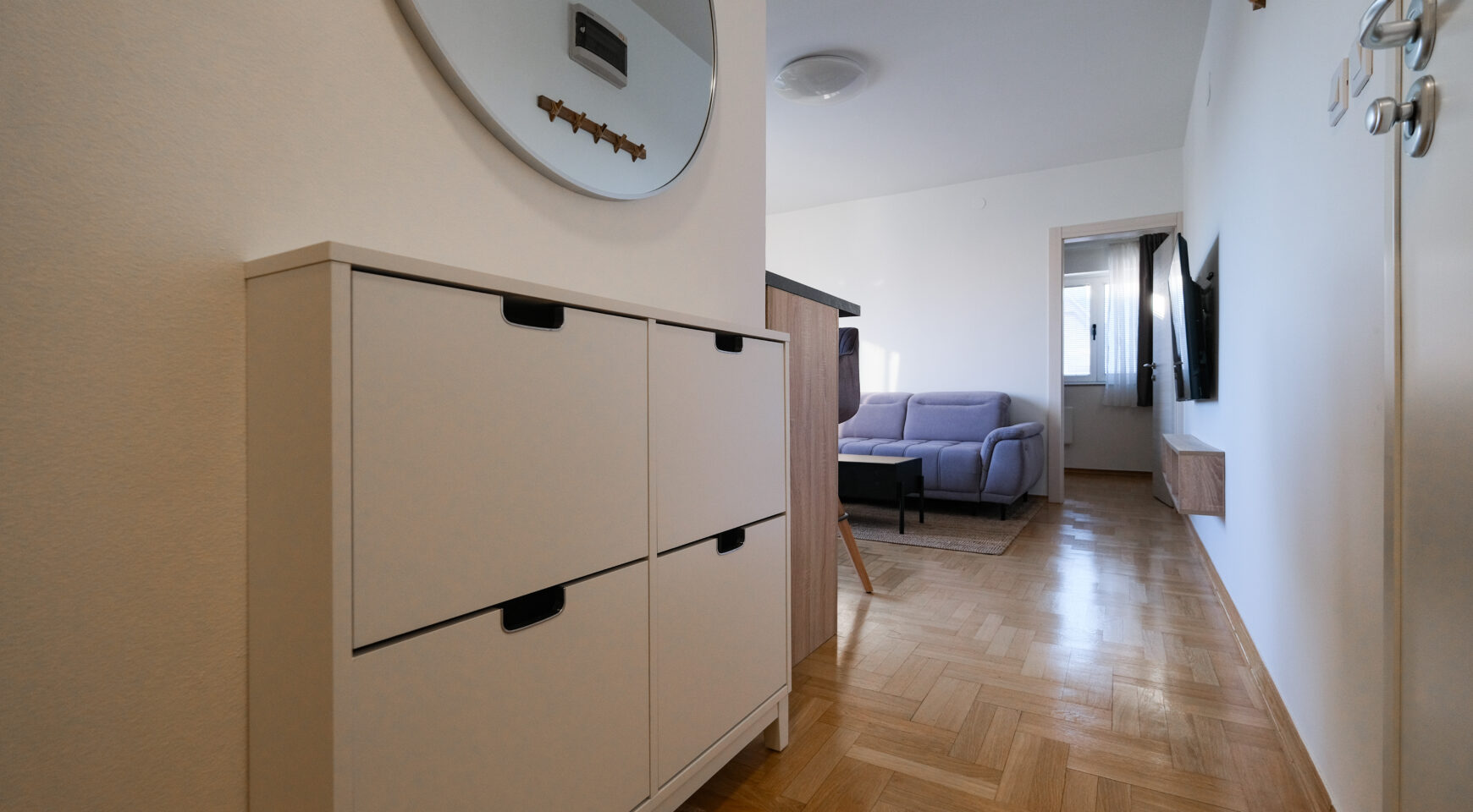 Unatoč manjoj kvadraturi, raspored je izuzetno dobro osmišljen i prostor je maksimalno iskorišten, što stan čini ugodnim za svakodnevni život.