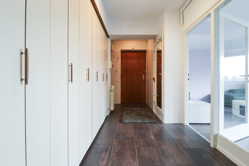 Nalazi se na četvrtom katu bez lifta od ukupno pet. Stan je površine 77 m2, a sastoji se od ulaznog hodnika, open space dnevnog boravka s blagovaonicom, izdvojenom kuhinjom, toaletom, dvije spavaće sobe, kupaonice i zatvorene lođe.
