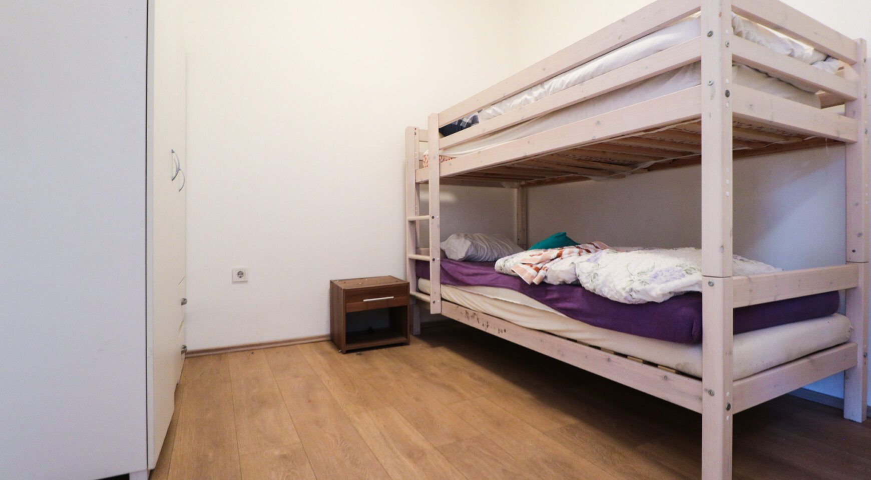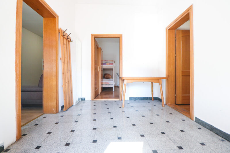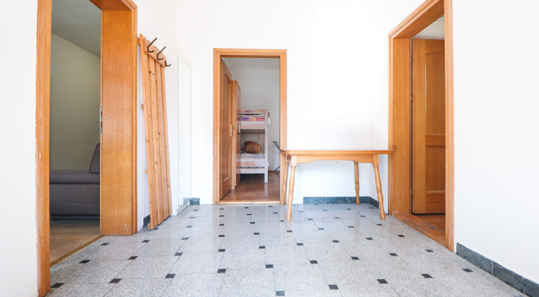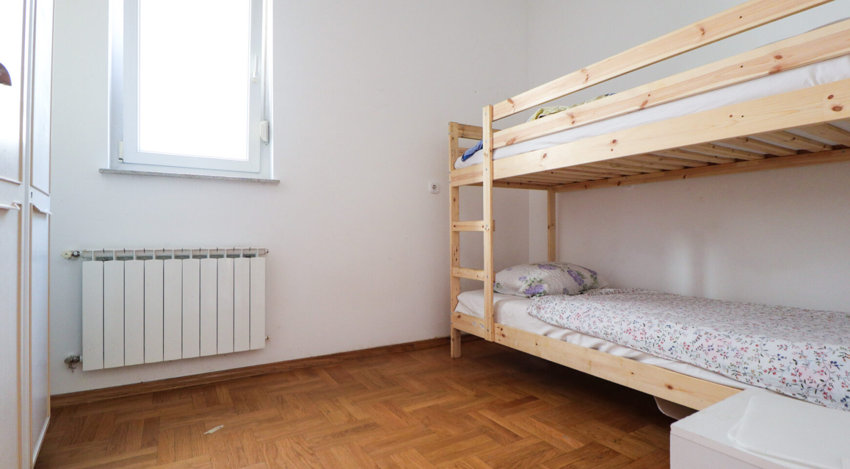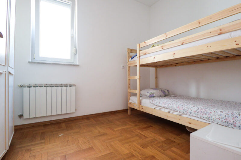 Stan je površine 85 m2 (82,32 m2 stambeni dio + 12,86 m2 parking). Sastoji se od ulaznog hodnika, četiri spavaće sobe, dnevnog boravka s blagovaonicom, zasebne kuhinje te kupaonice. Jedna velika prostorija (lijevo od hodnika) je 2022. podijeljena na dvije sobe i boravak, tako da se rušenjem tog zida može vratiti u inicijalno stanje, ukoliko je to potrebno.