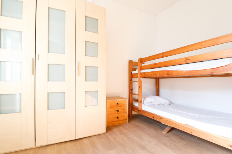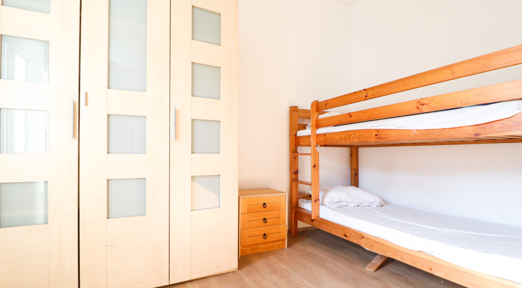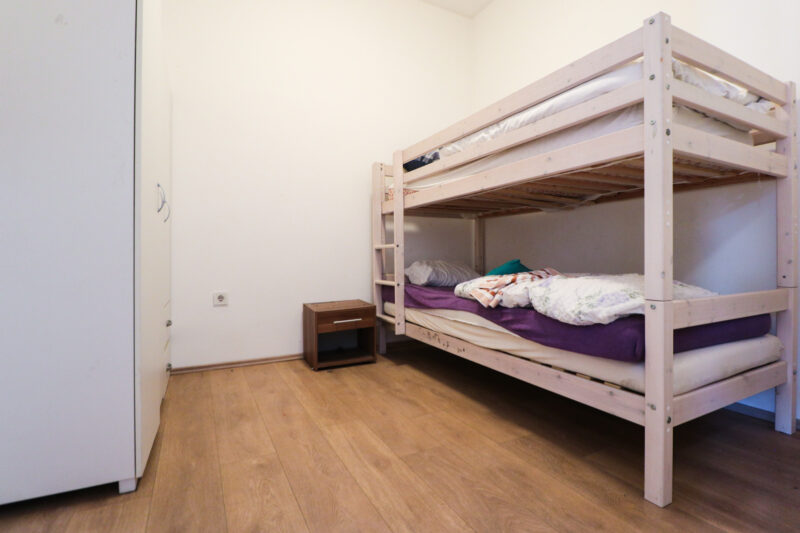 Trenutačno je potpuno namješten za stambenu uporabu te taj namještaj ulazi u cijenu stana. Sadrži deset ležajeva, velike ormare, noćne ormariće, blagovaonski stol, kauč, pećnicu, kuhinjsku ploču, hladnjak sa zamrzivačem, PVC stolariju, video portafon i sl.
