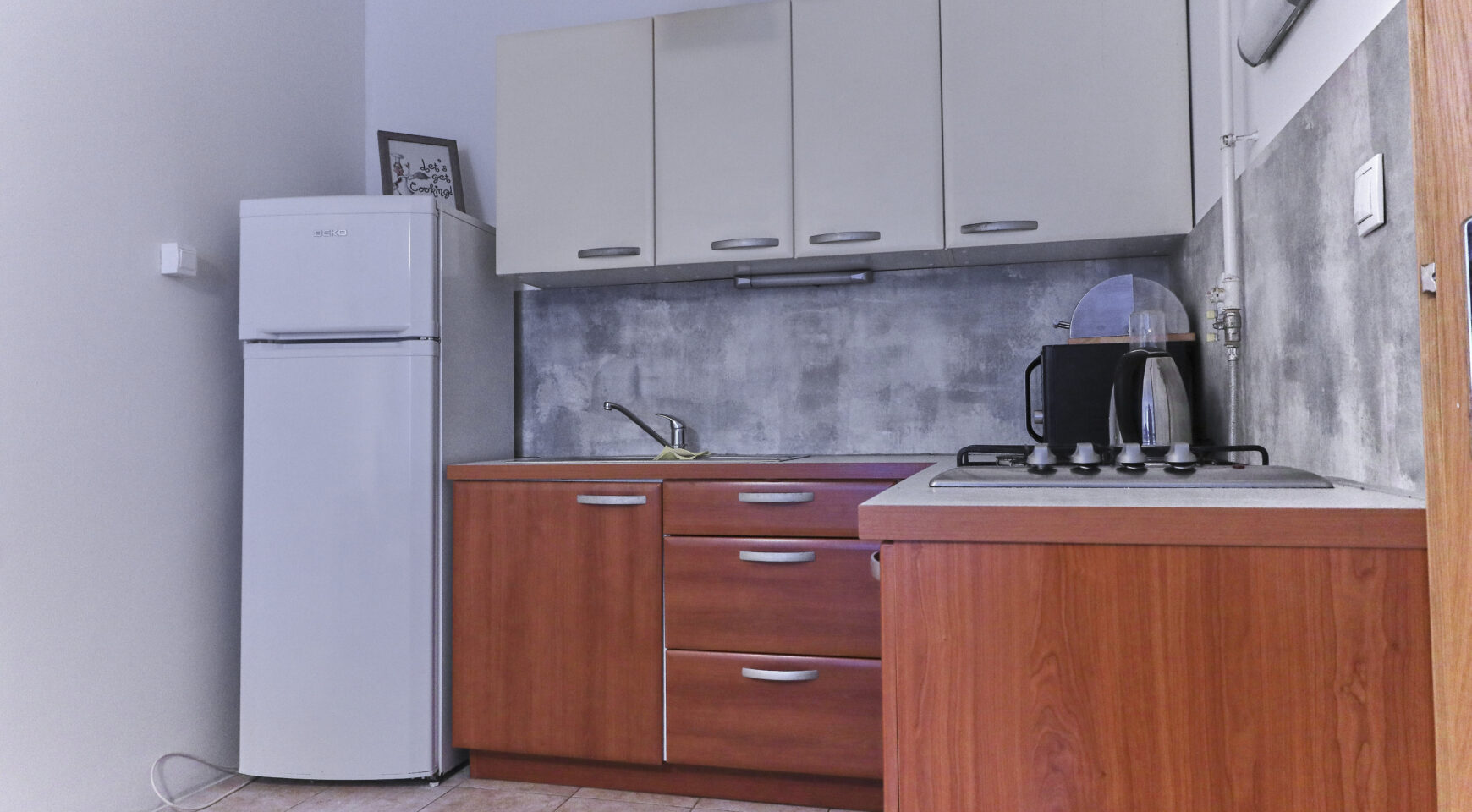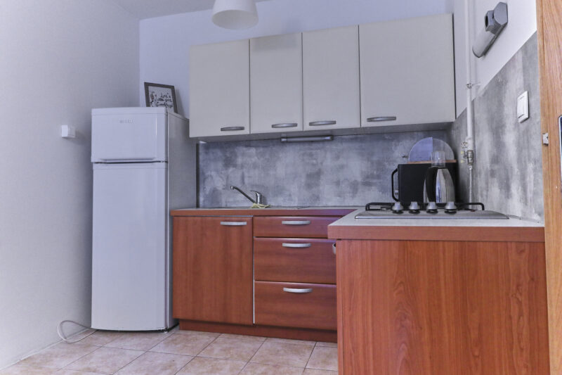 Stan se nalazi u visokom prizemlju, ima površinu od 50,16 m2 i sastoji se od ulaznog hodnika, spavaće sobe, kupaonice, lođe te kuhinje koja je spojena s blagovaonskim dijelom i dnevnim boravkom.