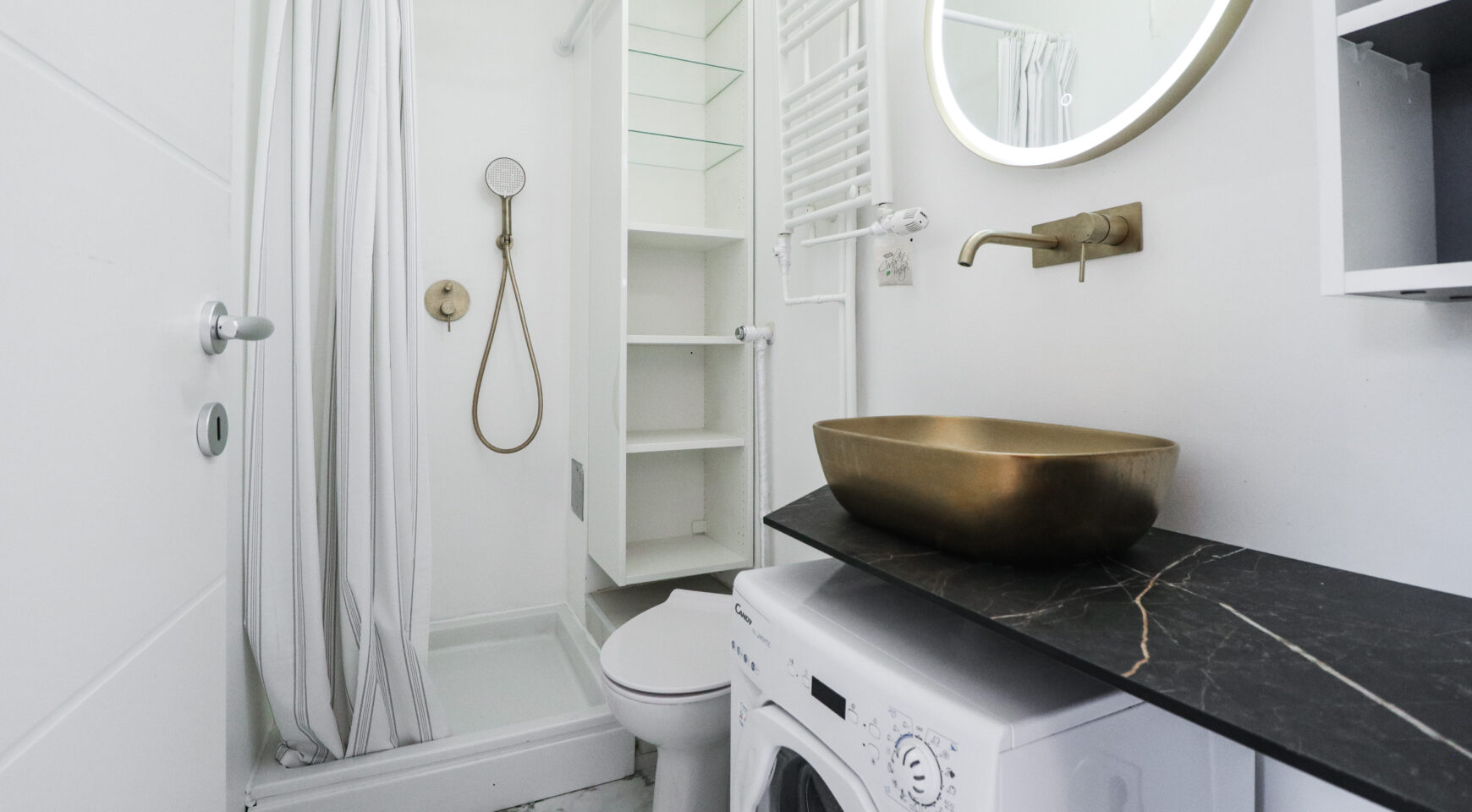 Posjeduje klima uređaj, TV, perilicu rublja, tuš kabinu, pećnicu, indukcijsku ploču, hladnjak sa zamrzivačem, PVC stolariju, protuprovalna vrata, portafon i sl.
