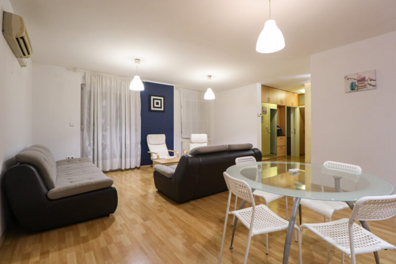 Iznajmljuje se prostran i uredan 3-soban stan s balkonom na prvom katu zgrade na Voltinom. Zgrada je izgrađena 2001. godine, ima ukupno tri kata te sadrži zajednički PARKING za stanare – gotovo uvijek ima slobodnog mjesta!
