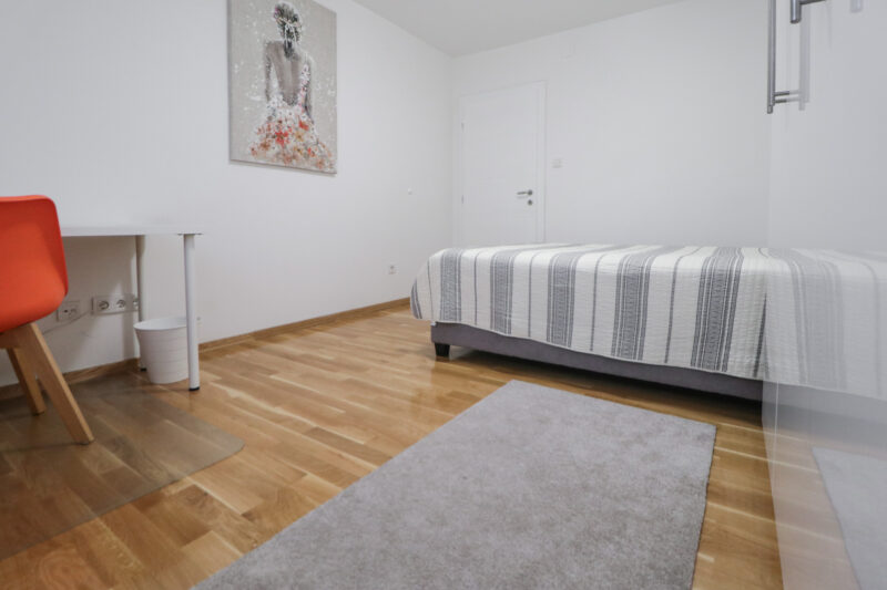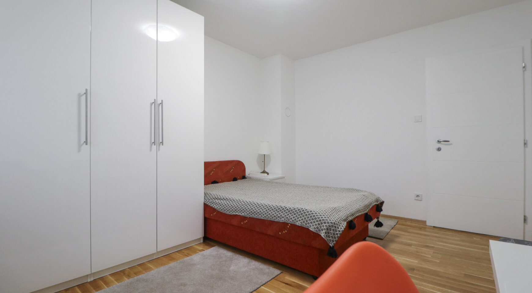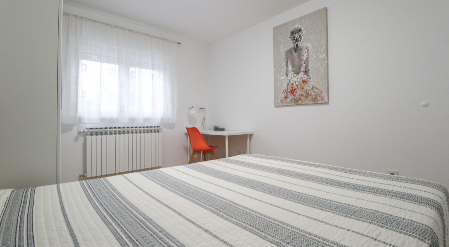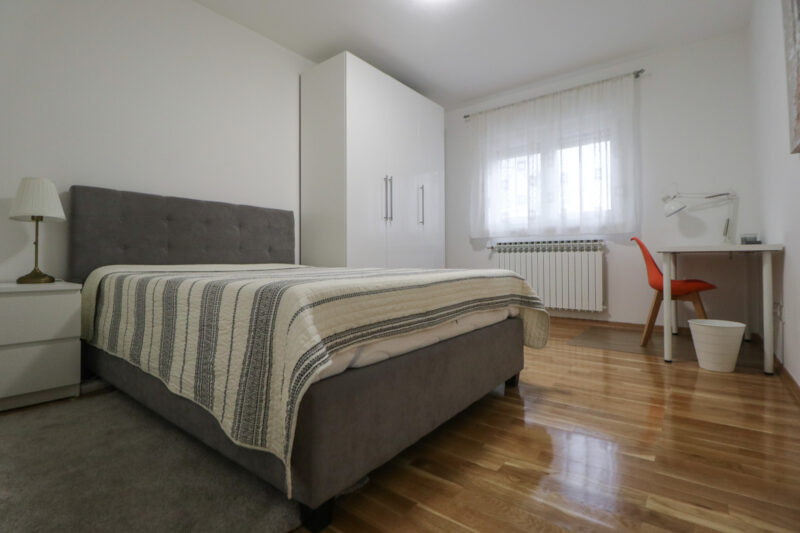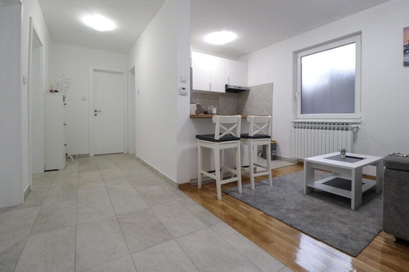 Iznajmljuje se kompletno renoviran 3-soban stan na Vukomercu/Borongaju. Nalazi se u visokom prizemlju potpuno obnovljene zgrade (nova fasada, stolarija, krovište…).